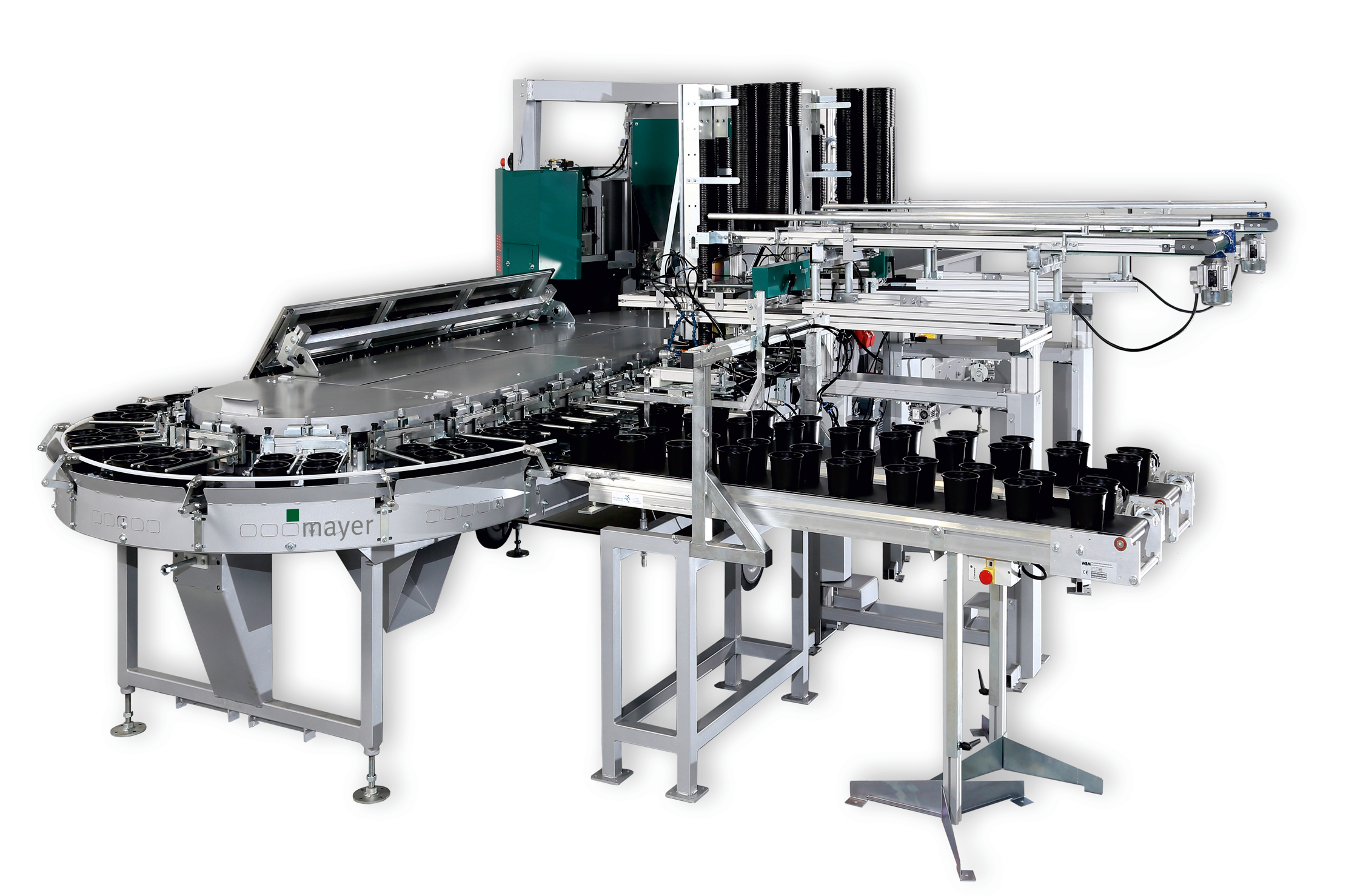 这款机器以最大化可能的顺滑操作和精度,实现高生产率花盆填土和栽苗作业。长形的转台提供了充分的栽苗空间,可提供5个人工栽苗工位;同时为与高速自动移栽机结合提供了充分的空间,可实现高速、均匀、高质量的花盆栽苗作业。机器可以广泛用于不同的花盆,尺寸从上口直径8cm到30cm宽范围可以使用,非常灵活。花盆填土输出量可达每小时一万盆(当采用4盆夹持装置时)。花盆支撑台高度固定式设计,因此输出传送带高度也是固定的,无需调整。钻孔单元可以冲出完美的花盆中心栽植孔;无论人工栽苗或与自动移栽机器结合,均可获得最好的栽植质量。机器的模块化结构设计,能够为不同需求的种植企业定制配置。